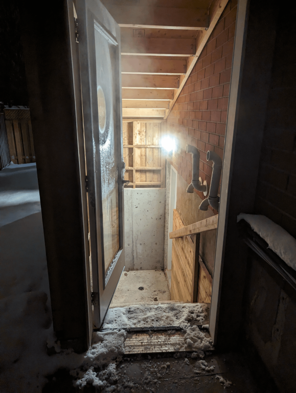 It was an interior stairs. Wasn't an apartment that would have its own separate entrance from outside. They just took the opportunity to enclose the original basement welled exterior exit. I see that often, even when no addition installed. Then the homeowner doesn't have to deal with heavy rain being concentrated down the basement exterior stairs, the surface drain getting clogged, and the water overflowing through the bottom of the door and into the basement.Is there a reason it needed an enclosure? Couldn’t they have just built a stairwell on stilts or something?