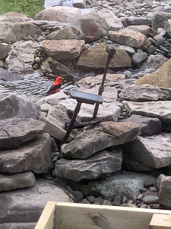 2 years ago I saw that exact bird in my front yard and tried to capture a good picture with my cell phone (you may recognize the same shepherd's hook I take other "portrait" photos on when they pose for me 😁). I was told it was a Scarlet Tanager. This was the best I could manage which led to my quest to find something that could do a better job. Hoping he comes back at some point!