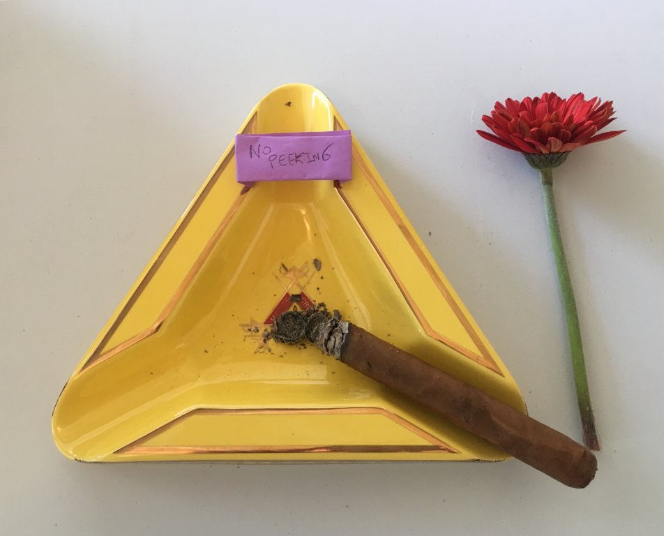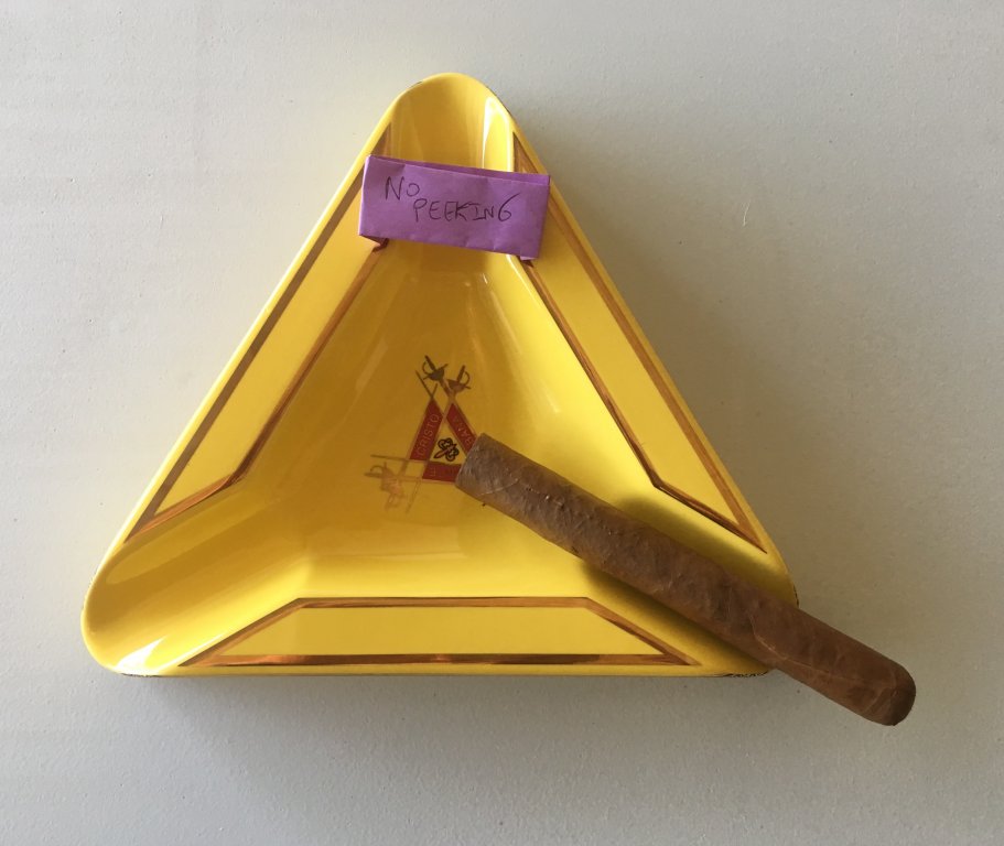 I didn’t measure the cigar but it looks like it’s about 6x50. Medium brown, smooth wrapper, very well constructed cigar with no soft spots. Aroma is of tobacco, cedar, sweet hay with floral undertones. Reminds me a lot of a Cuban but not quiet there which makes me think it’s either a Tat or Illusione.