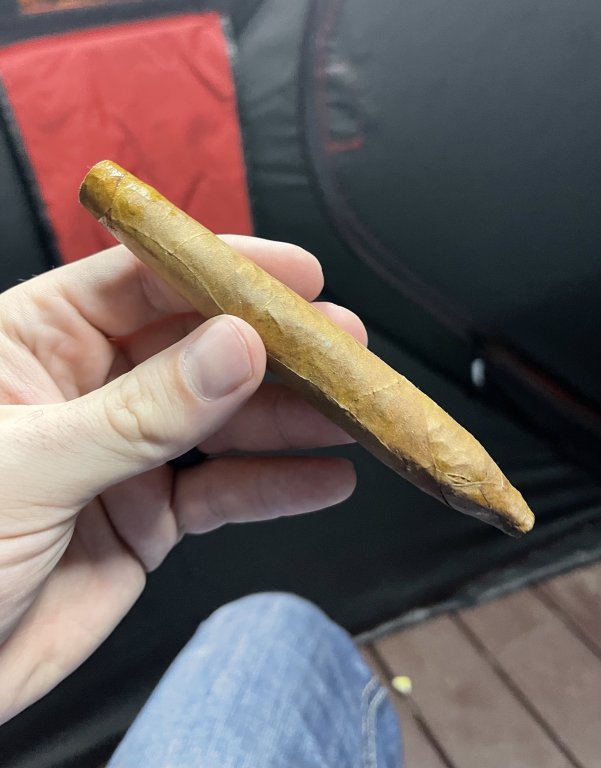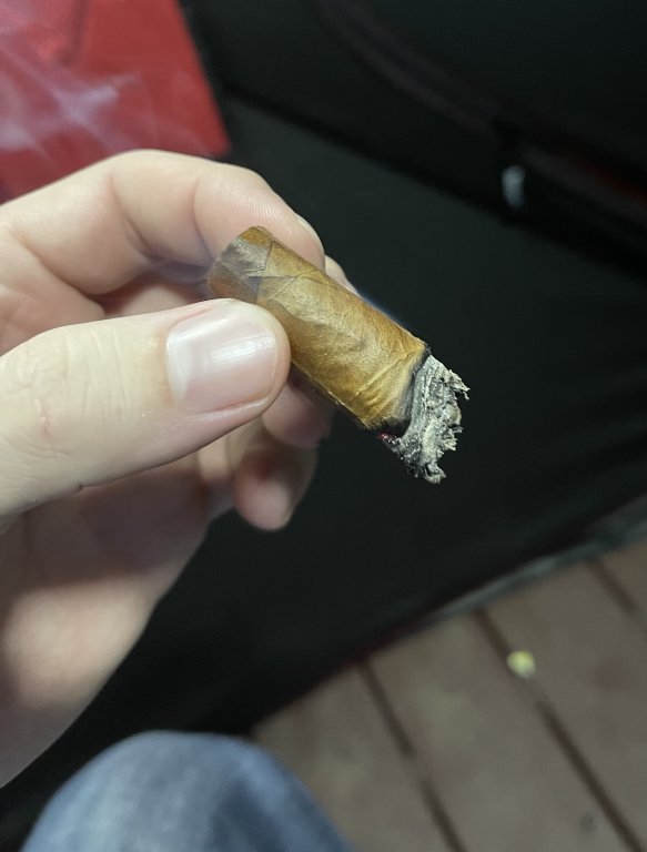 Last third: having a few relights, like this thing was a witch on the stake with great lung capacity. Close to full at this point. Surprisingly, the cream is still holding out. Good tobacco flavor coming through. Smoke still pouring out. Ima take a guess at NC liga series with the strength coming through. View attachment 50803