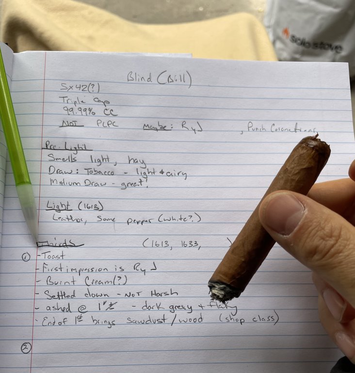 1st third: starting out medium but I can tell this is gonna get stronger. Pepper on the retrohale and during the exhale. Good flavor starting out. Slight cream, earth, no idea right now. View attachment 50801