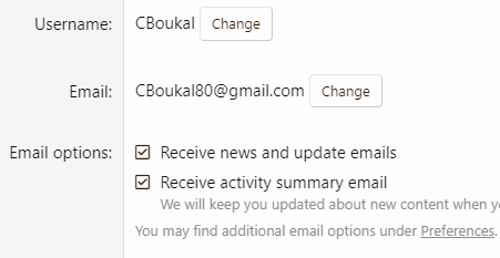 Yeah, that's where I keep going. I can change just about anything else... except my name. Do you have a "Change" button by your user name? What's in my screenshot is all I get... grrr.Maybe wait until tomorrow, or on a PC rather than phone. That's where I can change mine.