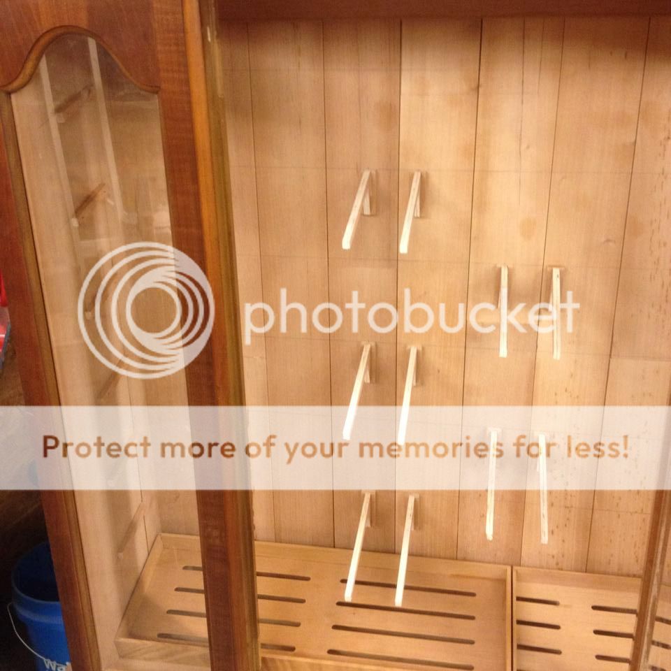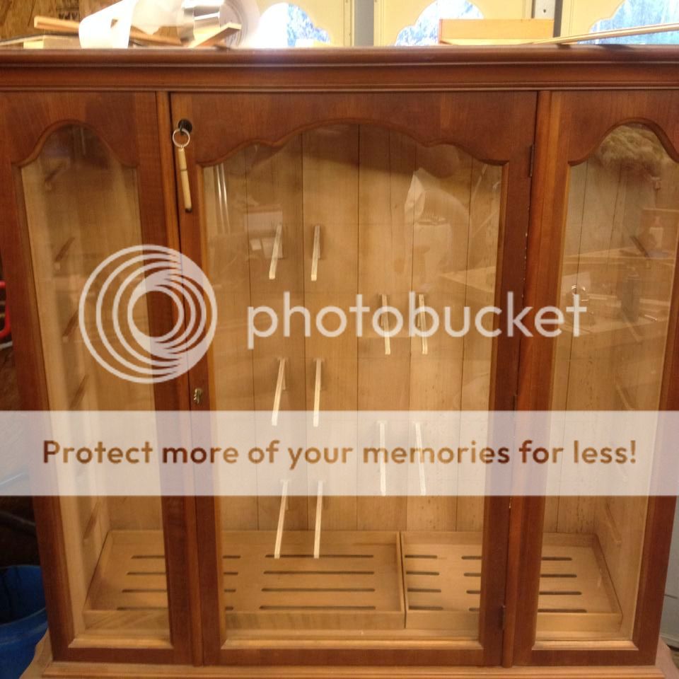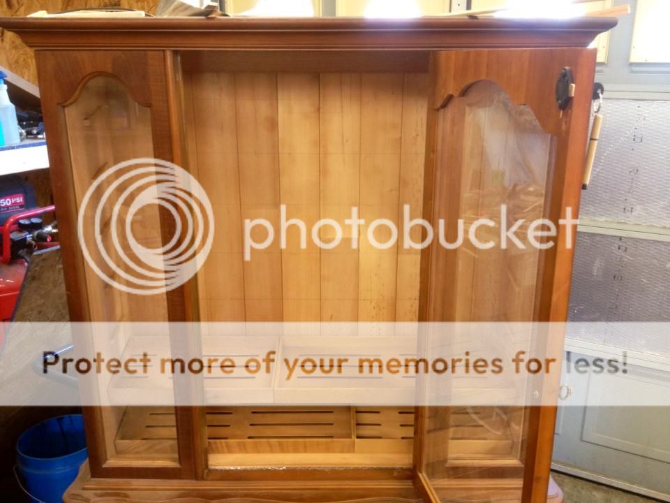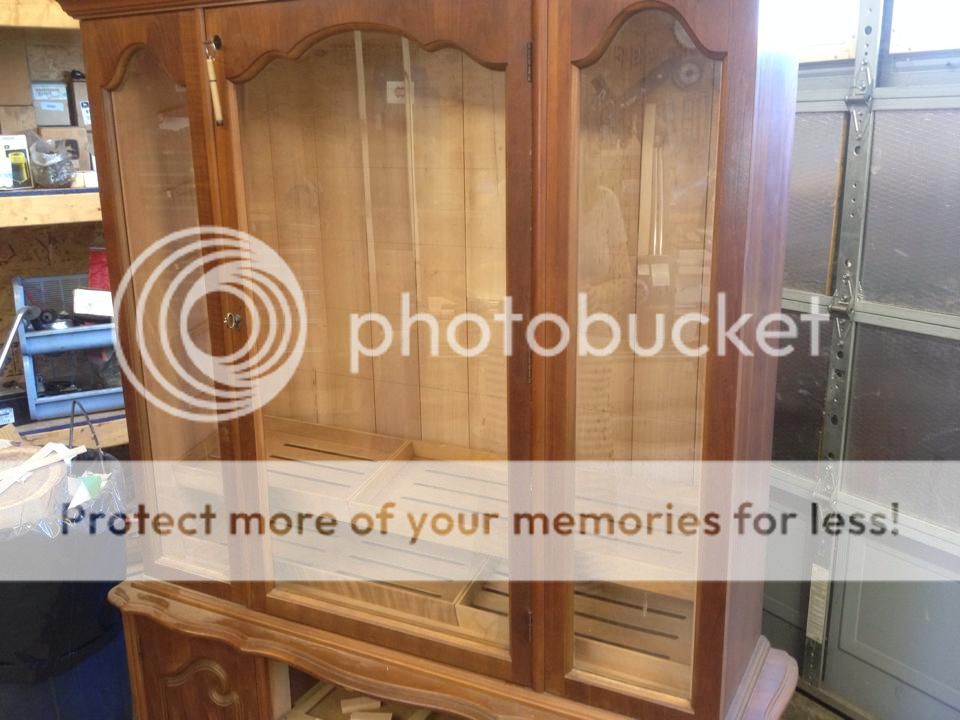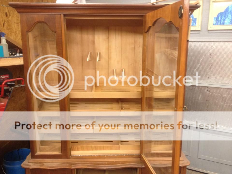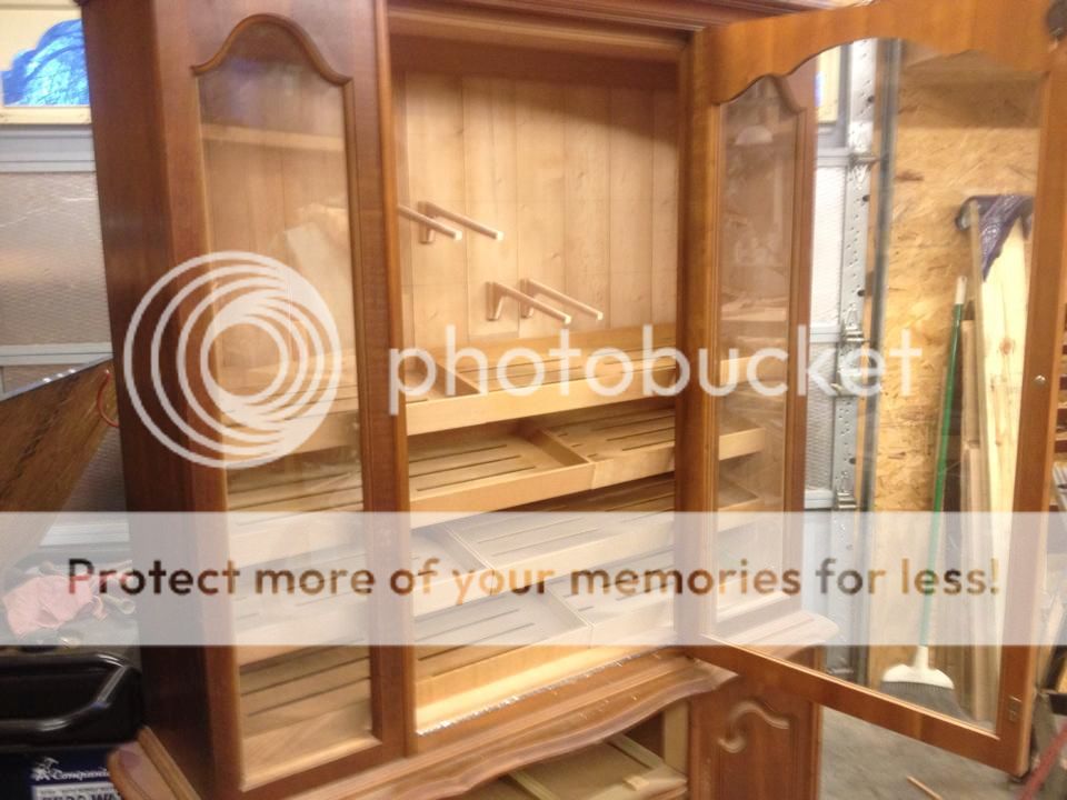 Step by step guide with pictures, as I take a Vintage Basset China Cabinet and convert it into a Humidor for my cigar collection. Plans are to seal and line inside of cabinet with impervious insulation for help in maintaining temperature and sealing followed by 1/2" tongue & groove Spanish Cedar lumber. Shelving will also be made out of Spanish Cedar. A Habitat Monitor will be added to automatically control and maintain humidity at a constant 70% with two humidifiers. One in the top of the cabinet and one in the bottom, as well, as maintaining the inside cabinet temperature at a constant 70 degrees via a Thermoelectric cooling unit and a heating rod installed within' the cabinet. The Habitat Monitor also includes an alarm for low water, low/high humidity and temperature + or -2 the set range. It will also be hooked directly to my Home Security System for theft and fire protection. Last thing that will be installed will be LED lighting throughout the interior of the cabinet. Gonna' be a long Summer project, so keep checking back often for new phases to be completed!