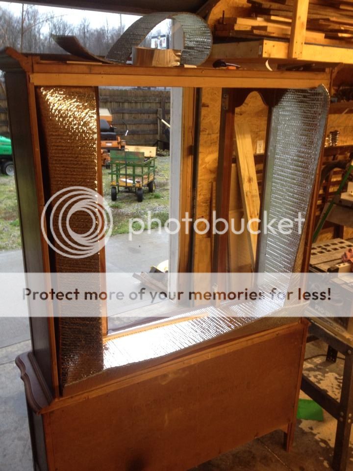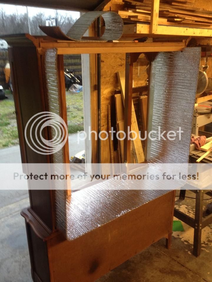 #10 Ready to start insulating the cabinet. Using Reflectix roll insulation. Has a great R rating and is impervious to water and moisture for a excellent seal. All seams sealed with aluminum Duct Work Tape. All edges of tape then sealed with a thin coat of silicone to insure a airtight seal.