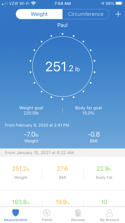 Hey gang, this thread has me interested in doing this and I've started today. I weighed 310 on May 1, 2020 when I started walking and using myfitnesspal. By July I was walking 100 miles a month. I lost over 50 pounds by October, joined a gym and started lifting. Basically since that time, I've lost and gained the same 10 pounds over and over. I'm happy with where I'm at, but would love to lose another 50 over the next year or two. I tend to smoke and have a drink late at night so that's going to have to change a bit. So, we'll see what happens.