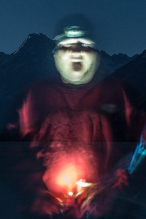 54°, calm, on the back porch, water, with some Angels Envy Rye at the end. 7:15