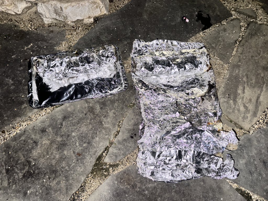 8. Seal it up all tight. Then take about one 40 inch sheet of foil and roll the packet in it for an added protective layer, making sure it ends with the packets original seam facing upwards for obvious reasons.
