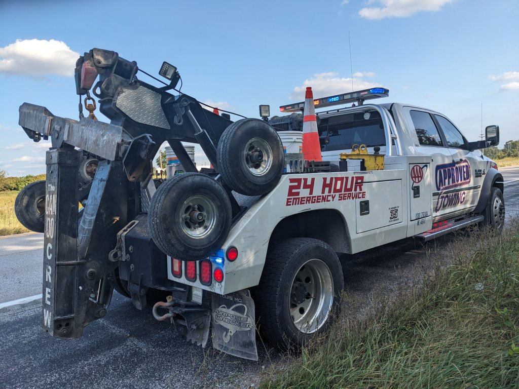 Called AAA. Four hours and five more phone calls later, they dispatch THIS tow truck. The driver tries to convince me that "I can wrap a strap around the middle and just hang it off of the boom. Ummm NO.