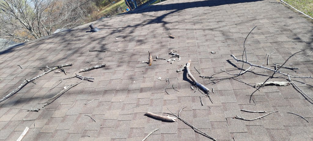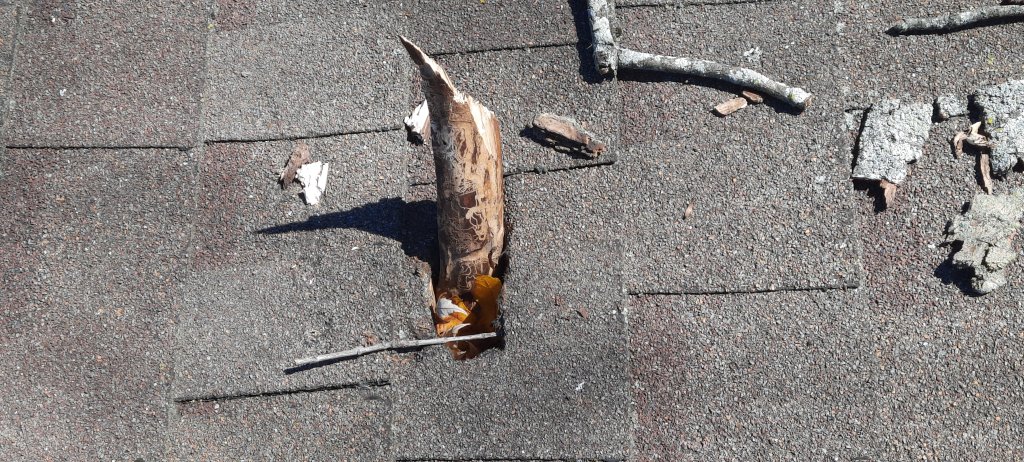 I have a neighbor who has large dying trees and occasionally they drop branches on my house. The other night it was particularly windy and a sizable one fell off and punched a whole in my roof about the size of a fist. Real pissed off about it as the property owner has been previously notified.