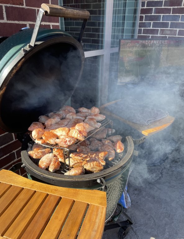 Damn Aaron! I swear I am going to come visit you! We can make some great food, smoke great cigars, drink great beer & bourbon, and reminisce about your grandfathers day when the Cowboys were good.Getting ready for the only game that matters today. Go Cowboys! Wings on the egg