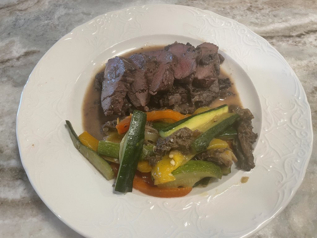 ETA: The elk was cooked medium rare, but it doesn’t look like it in the picture. The color changed after I poured the sauce on.