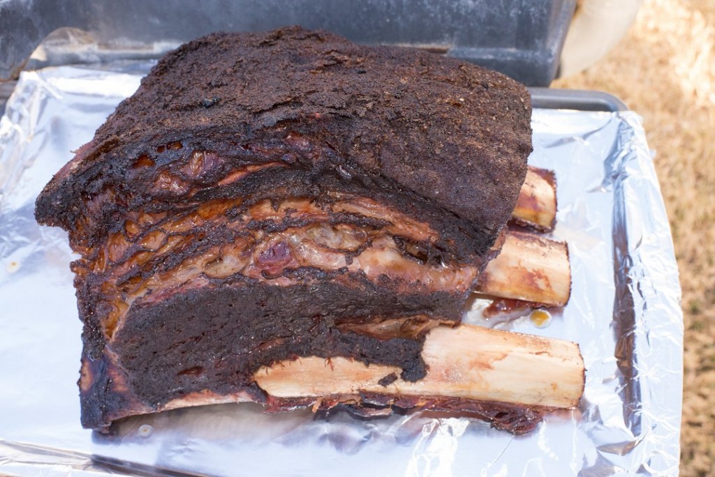 Here's a 3 rib beef rib I did on the ol' big home made grill, there's just salt and pepper on there, but the fat crisped up to look like actual bark.View attachment 43053