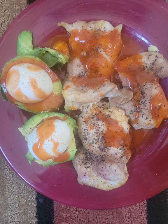 Twenty years ago I wouldn't have touched chicken thighs or avocado. Not sure about the combination but here we are. View attachment 74788