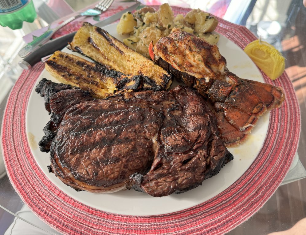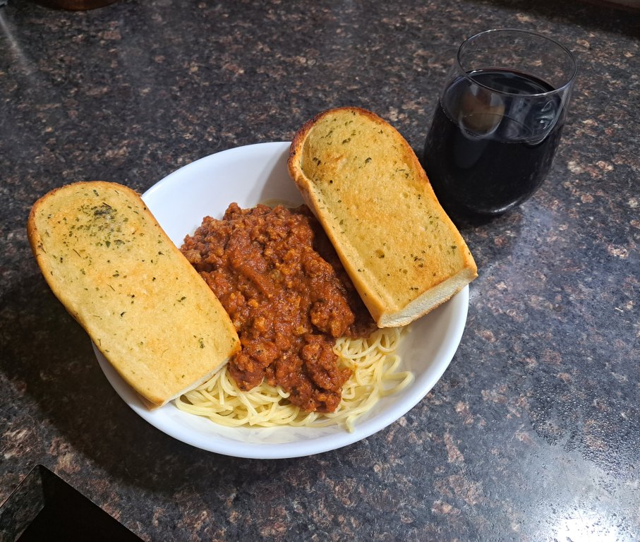 Garlic bread and a hefty glass of Bourbon Barrel aged cabernet.