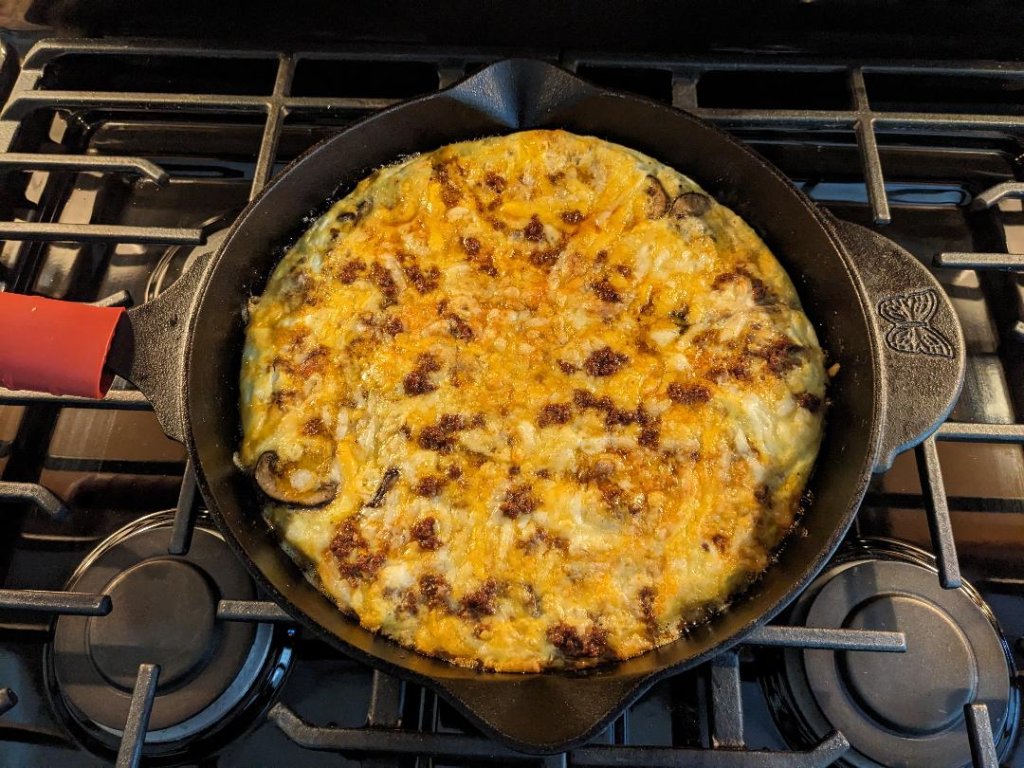 If I propose to you, will you say "yes?"Yesterday's breakfast frittata, chorizo, shitakes, baby bella, and oysters mushrooms and Mexican four cheese blend.