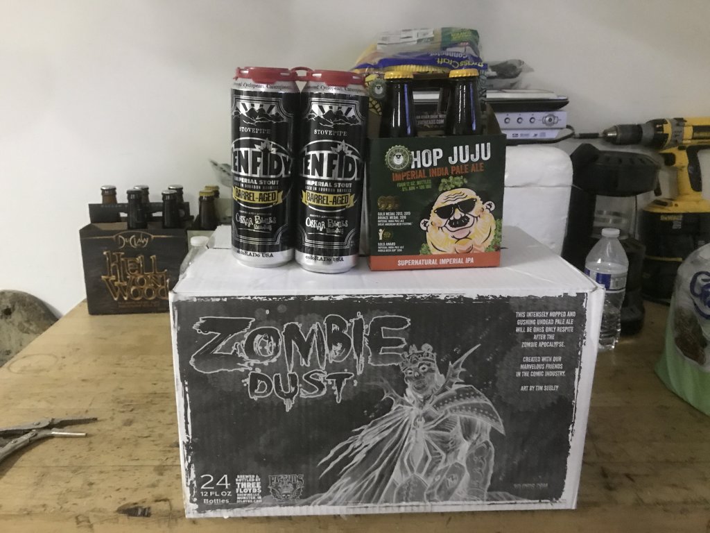 My good friend Jeff (Cigarstone) came into town from Ohio and I had him pick me up a case of Zombie Dust, a sixer of Hop Ju Ju, and four Ten Fidy Barrel Aged. :p